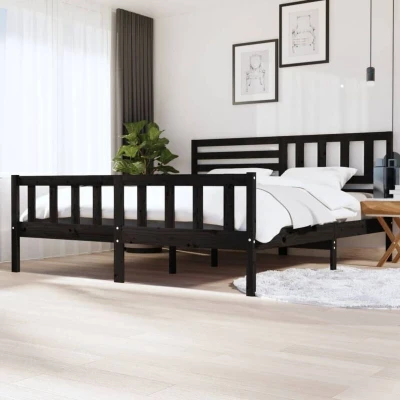 3101177 Bed Frame without Mattress Black Solid Wood 200x200 cm (810106+814168) Vidaxl