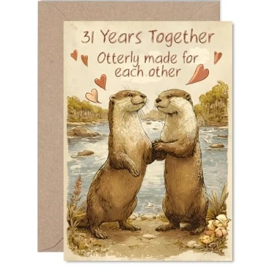 31st Anniversary Card for Women Men Rustic Style Cute Otters Happy 31 Year Companion Girlfriend Boyfriend Husband, A5 Wedding Anniversaries Greeting Cards