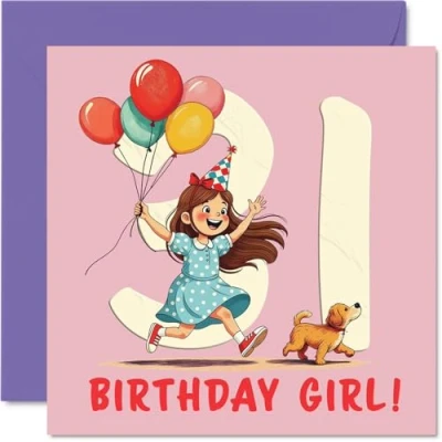 31st Birthday Cards for Women Balloon Girl Happy Card 31 Year Old Woman Wife Daughter Sister Colleague, 145mm Bday Greeting