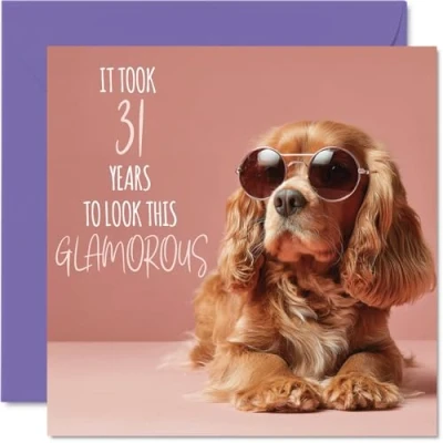 31st Birthday Cards for Women Glamorous Puppy Happy Card 31 Year Old Woman Cousin Friend Colleague Neighbour, 145mm Bday Greeting