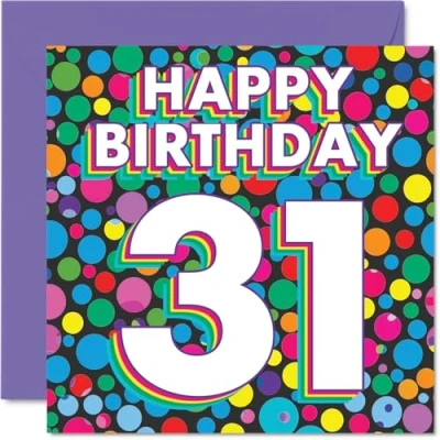31st Birthday Cards for Women Men Funky Rainbow Dots Happy Card 31 Year Old Woman Man Colleague Niece Uncle Husband, 145mm Bday Greeting