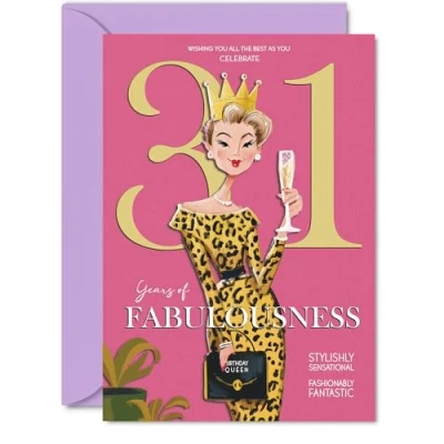 31st Birthday Cards for Women Years Of Fabulousness Happy Card 31 Year Old Woman Neighbour Wife Colleague Friend, A5 Bday Greeting