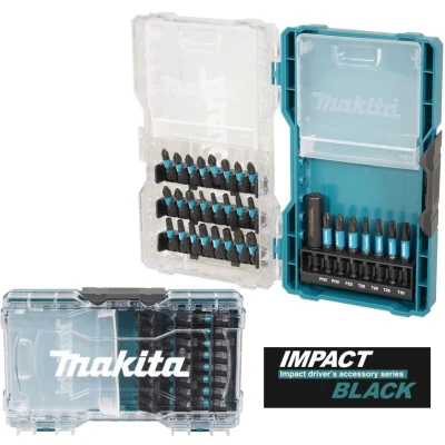General description Makita's Impact Black 32 piece screw bit set is designed for impact drivers, featuring high durability and a unique black coating that prevents rusting and corrosion. This set is ideal for professional use, providing long-lasting performance and reducing maintenance costs. Technical specifications Set includes 31 Impact Black screw bits and a magnetic bit holder 24 x 25mm Screw Bits: PH1, PH2 x 4, PH3, PZ1, PZ2 x 3, PZ3, T10, T15, T20 x 3, T25 x 3, T30 x 3, T40 x 2 7 x 50mm Screw Bits: PH2 x 2, PZ2, T20 x 2, T25, T30 1 x Magnetic Bit Holder: ¼” Hex 60mm 1 x Clear Case Other information Impact Black screw bits are 20% more durable than standard screw bits Designed to support professional users with extremely durable accessories