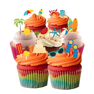 32 Stand Up Summer Beach Holiday Themed Edible Wafer Paper Cake Toppers Images As shown in the Picture - You will receive 32 images exactly as shown, just push them slightly into buttercream icing and they stand up. These toppers require cutting out with sharp scissors and are then ready to place straight on your cakes Really great images printed with edible inks - perfect for summer parties Fully Edible - Wafer Paper ingredients - Water, Sunflower Oil and potato starch