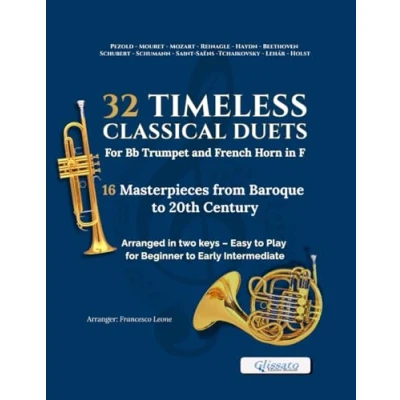 32 Timeless Classical Duets for Bb Trumpet and French Horn in F 16 Masterpieces from Baroque to 20th Century, Arranged Two Keys: Easy Play ... Brass Lessons, Rehearsals, Performances