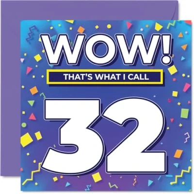 32nd Birthday Cards for Men Women WOW Thats What I Call Happy Card 32 Year Old Man Woman Wife Brother Colleague Friend, 145mm Bday Greeting