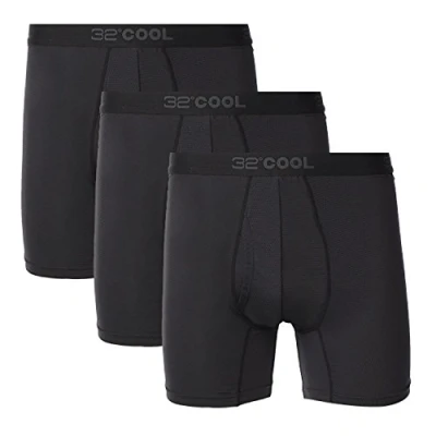 32º DEGREES Mens 3 Pack Active Mesh Boxer Brief, Blk/Blk/Blk, M