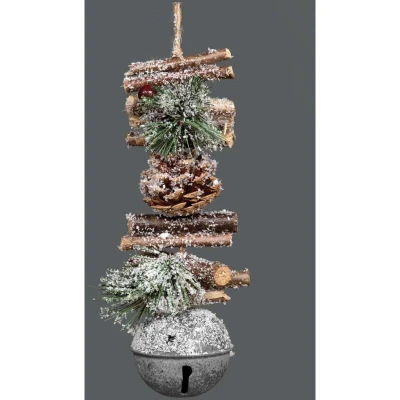 General description This 33CM Garland Hanging Decoration features a festive design with silver bells, wooden sticks, berries, and pinecones, making it a perfect addition to your Christmas home decor. Technical specifications Diameter: 33 cm Material: Wood, Berries, Pinecones, Metal (bells)