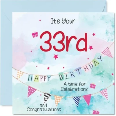 33rd Birthday Cards for Men Party Bunting Happy Card 33 Year Old Man Colleague Nephew Neighbour Friend, 145mm Bday Greeting