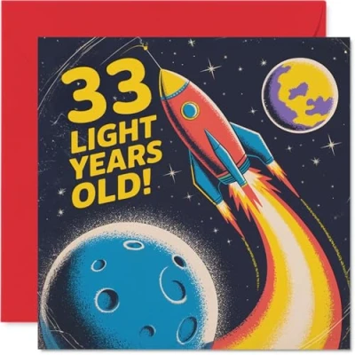 33rd Birthday Cards for Women Men Light Years Old Happy Card 33 Year Woman Man Husband Friend Neighbour Uncle, 145mm Bday Greeting