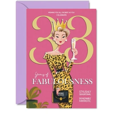 33rd Birthday Cards for Women Years Of Fabulousness Happy Card 33 Year Old Woman Auntie Cousin Wife Neighbour, A5 Bday Greeting