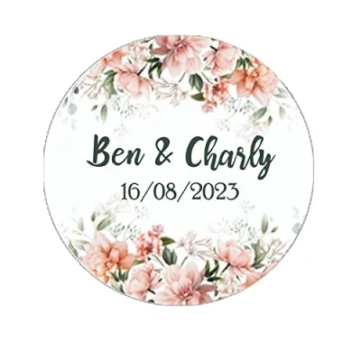 35 Personalised Wedding Round Stickers. Printed on A4 Sheets - Can be personalised with two names (first names only) and the Date. Lovely finishing touch to your presents. A Lovely way to make your event that extra bit special! Individual sticker size is approximately 3.7 cm. Good quality, professionally designed labels, to make your event a little more MAGICAL! Personalisation Information required: Name of the couple. Each sticker sheet (35 stickers) will be printed with the SAME wording so if you require more than one lot of wording please purchase another sheet. Use 'Customize Now' button, add the personalization you require. Select 'Add to Basket' and then Checkout.