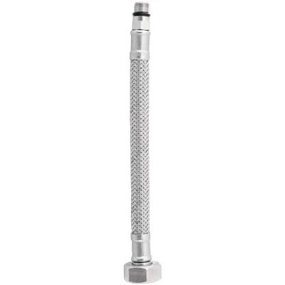 General description The 35cm Flexi Flexible Kitchen Basin MonoBloc Tap Connector Hose Pipe is designed for use with monobloc kitchen or basin mixer taps. It features high-quality materials for durability and reliability. Technical specifications Length: 35cm Material: Stainless steel braided Connection type: M12 x 3/8' BSP Threaded male connection: 12mm Compatibility and accessories Compatible with standard kitchen and basin pipework Includes rubber washers for a watertight connection Installation Easy to install with loose nut female ends that connect to standard pipework and a watertight 'O' ring for the tap connection.