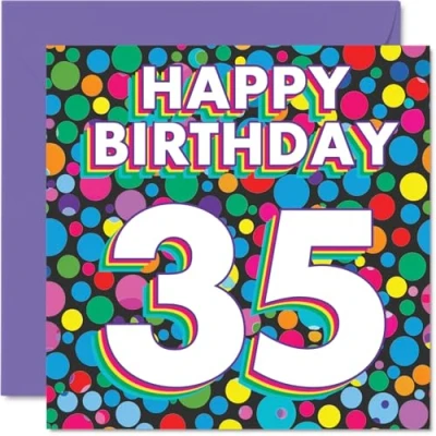 35th Birthday Cards for Women Men Funky Rainbow Dots Happy Card 35 Year Old Woman Man Friend Son Niece Uncle, 145mm Bday Greeting