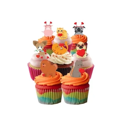 36 Stand Up Cute Pets Cats Dogs Animals Valentine Hearts Edible Wafer Paper Cake Toppers Decorations Images are as shown in the Picture - Printed onto edible wafer paper with edible inks These toppers require cutting out with sharp scissors and are then ready to place straight on your cakes Cute pet animal images as shown -36 - to create great cake toppers - printed with edible inks onto fully edible wafer paper Fully Edible - Wafer Paper ingredients - Water, sunflower Oil and potato starch, Manufacturer: Top That