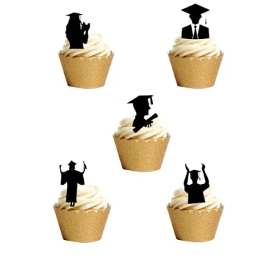 36 Stand Up Silhouette Graduation Themed Edible Wafer Paper Cake Toppers Decorations Just cut them out and then push them into buttercream icing and they will stand up You will receive 36 Stand Up Silhouette Graduation Themed Images which REQUIRE CUTTING OUT and are then ready to place straight on your cakes Fully edible with a shelf life of at least 12 months from purchase if kept dry Fully Edible - Wafer Paper ingredients - Water, Sunflower Oil and Potato Starch, Manufacturer: Orange Trading Dartmouth LTD