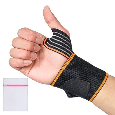 360 RELIEF 1 Pack Adjustable Wrist Support Wrap with Wide Thumb Loop Straps Compression Bandage Gym, Workout, Training Black Mesh Laundry Bag