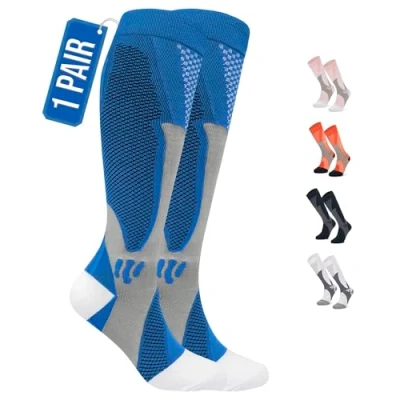 Optimal Compression & Comfort: Our compression socks are expertly designed to enhance circulation and prevent conditions like DVT, varicose veins, and swelling. Ideal for daily wear, these socks are perfect for athletes, featuring sweat-absorbent material and secure, comfortable stitching. Support During Pregnancy: Pregnancy increases body fluid by 50%, often leading to swollen legs and feet. Our compression socks apply gentle pressure to reduce swelling and improve comfort throughout your maternity journey. Enhanced Circulation for Active Lifestyles: Ideal for those who spend long hours seated or standing, our socks promote blood circulation, reducing the risk of clots. They also support active lifestyles by preventing fatigue, cramps, and the discomfort of heavy legs during exercise, running, or workouts. Essential Travel Socks: Compression socks are clinically proven to enhance blood flow and are indispensable for travellers. High-certainty evidence shows that wearing compression stockings reduces the risk of symptomless DVT on flights longer than four hours. They also help prevent swollen ankles, ensuring your journeys are both safer and more comfortable. Breathable & Durable: Made from premium, lightweight, and breathable material, our knee-length compression stockings are designed for year-round use. They are sweat-absorbent and feature anti-slip properties. Customer Assurance: We stand by our quality and service. If the size does not fit or you are unhappy for any reason, contact us within 24 hours for assistance