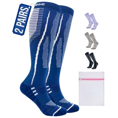 360 RELIEF 2 Pairs Compression Socks for Women & Men 15 20 mmHg, Enhanced Cushioned Fit, Soft Breathable Sports, Travel, Running, Pregnancy, L/XL, Navy Blue + Laundry Bag