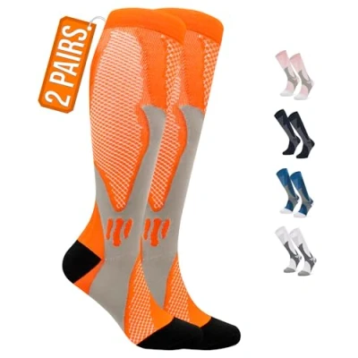 360 RELIEF 2 Pairs Copper Compression Socks for Women & Men Ideal Running, Travel, Pregnancy, 15 20 mmHg, S/M, Orange, Includes Laundry Bag