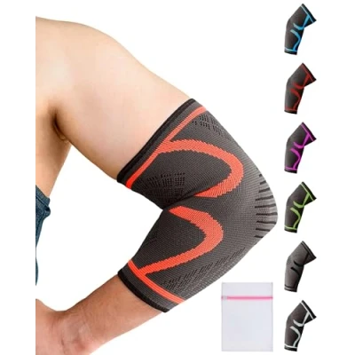 Targeted Support: Provides focused pressure to improve elbow comfort and enhance muscle performance during activities. Non-Slip Design: Ensures a secure, skin-friendly fit for both left and right elbows, keeping the sleeve in place throughout your workout. Versatile Use: Ideal for sports and daily activities like basketball, weightlifting, gardening, and more, providing consistent support without limiting motion. Comfortable Fit: Designed for men, women, and kids, it offers all-day comfort whether you're at work, at the gym, or on the go. Breathable & Durable: Made from high-quality materials that maintain their shape and support even after extended use. They are sweat-absorbent and feature anti-slip properties. Each pair comes with a mesh laundry bag; machine-washable for easy care. Multiple Sizes: Available in a variety of sizes and colours, offering the perfect fit and adjustable compression for all users. Customer Assurance: We stand by our quality and service. If the size does not fit or you are unhappy for any reason, contact us within 24 hours for assistance