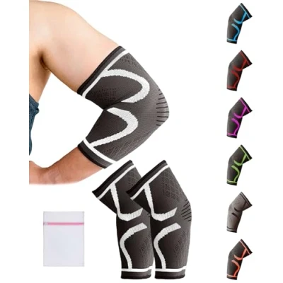 Targeted Support: Provides focused pressure to improve elbow comfort and enhance muscle performance during activities. Non-Slip Design: Ensures a secure, skin-friendly fit for both left and right elbows, keeping the sleeve in place throughout your workout. Versatile Use: Ideal for sports and daily activities like basketball, weightlifting, gardening, and more, providing consistent support without limiting motion. Comfortable Fit: Designed for men, women, and kids, it offers all-day comfort whether you're at work, at the gym, or on the go. Breathable & Durable: Made from high-quality materials that maintain their shape and support even after extended use. They are sweat-absorbent and feature anti-slip properties. Each pair comes with a mesh laundry bag; machine-washable for easy care. Multiple Sizes: Available in a variety of sizes and colours, offering the perfect fit and adjustable compression for all users. Customer Assurance: We stand by our quality and service. If the size does not fit or you are unhappy for any reason, contact us within 24 hours for assistance