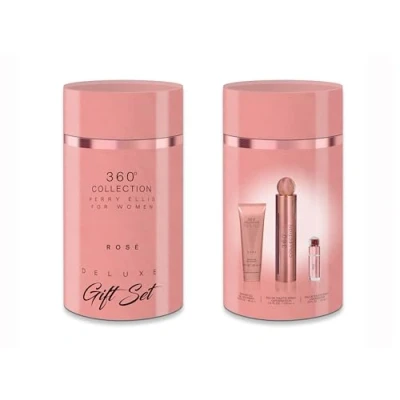 360 Rose by Perry Ellis for Women 3 Pc Gift Set 3.4oz EDP Spray, 0.25oz 3oz Shower Gel