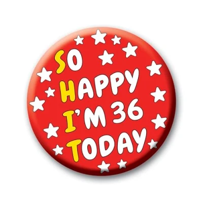 36th Birthday Badge 76mm So Happy I’m 36 Today Pin Button Funny Rude Gift for Adults