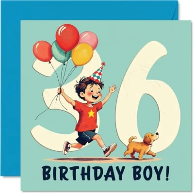36th Birthday Cards for Men Balloon Boy Happy Card 36 Year Old Man Brother Uncle Friend Son, 145mm Bday Greeting