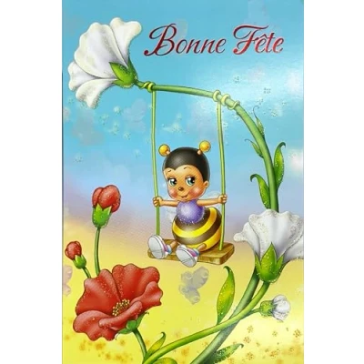 37 040BF Happy Party Greeting Card for Little Girl Boy Bee Swing Flowers with Envelope Size 12 x 17.5 cm Celebrating a Name Saint Patron Catherine November 25