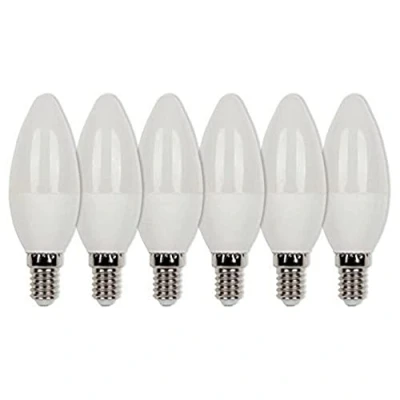 Decorative B35 LED provides the look of incandescent light bulbs with energy savings up to 90% Energy-efficient 6 watt LED replaces a 40-watt incandescent and lasts longer than conventional lighting Dimmable, E14 base, frost finish, damp rated, suitable for use in enclosed fixtures Turns on instantly to full brightness, 500 lumens, withstands 10,000 on/off cycles, A+ energy rating Warm white light (3000K) is ideal for use in chandeliers, fan lights and outdoor wall fixtures