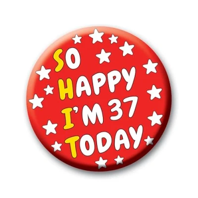 37th Birthday Badge 76mm So Happy I’m 37 Today Pin Button Funny Rude Gift for Adults