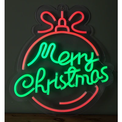 38cm x 40cm Light up Red and Green Neon Flex Merry Christmas Ball
