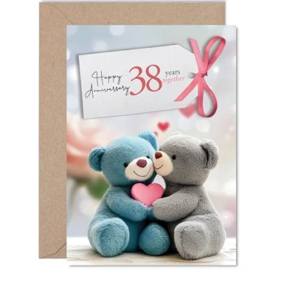38th Anniversary Card for Men Women Bears in Love Happy 38 Year Girlfriend Partner Wife Husband, 5x7 Inch Wedding Anniversaries Greeting Cards