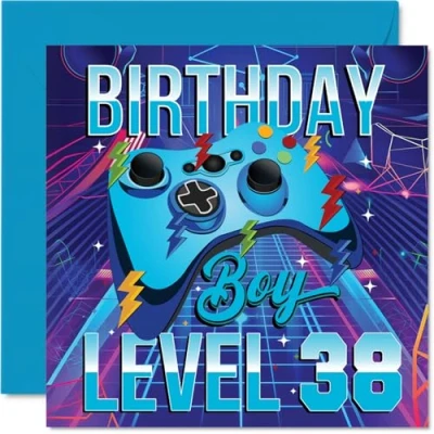 38th Birthday Cards for Men Gamer Level Happy Card 38 Year Old Man Cousin Nephew Uncle Brother, 145mm Bday Greeting