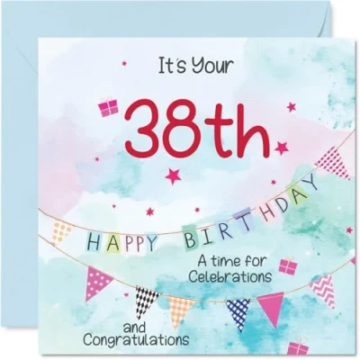38th Birthday Cards for Men Party Bunting Happy Card 38 Year Old Man Cousin Nephew Uncle Brother, 145mm Bday Greeting