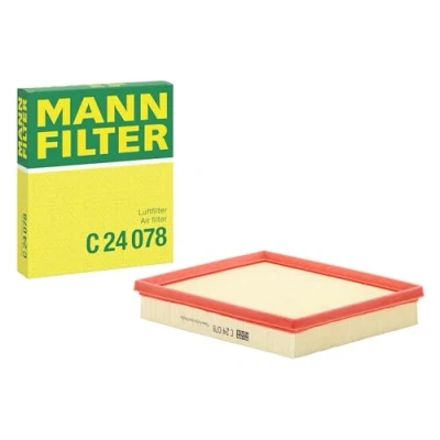 MANN-FILTER Air Filter C 24 078 / Dimensions (mm): A = 199; B = 243; H = 41 / Premium Filter in Original Equipment Quality High-quality MANN-FILTER air filters for clean air intake and optimum protection for your engine, mass air flow sensor & other sensitive components / They meet requirements of modern engine technology Highest dirt holding capacity and dirt separation efficiency, low flow resistance and high pleat stability ensure functional reliability during the entire service interval Looking to find the correct filter? Select: brand, model, vehicle type, and engine type above to see which one fits your vehicle MANN+HUMMEL complies with REACH-regulation + supports the goal of Improved health and safety through the design, manufacturing, usage, disposal and recycling of our products