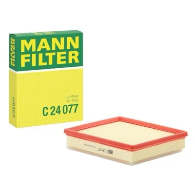 MANN-FILTER Air Filter C 24 077 / Dimensions (mm): A = 199; B = 243; H = 53 / Premium Filter in Original Equipment Quality High-quality MANN-FILTER air filters for clean air intake and optimum protection for your engine, mass air flow sensor & other sensitive components / They meet requirements of modern engine technology Highest dirt holding capacity and dirt separation efficiency, low flow resistance and high pleat stability ensure functional reliability during the entire service interval Looking to find the correct filter? Select: brand, model, vehicle type, and engine type above to see which one fits your vehicle MANN+HUMMEL complies with REACH-regulation + supports the goal of Improved health and safety through the design, manufacturing, usage, disposal and recycling of our products