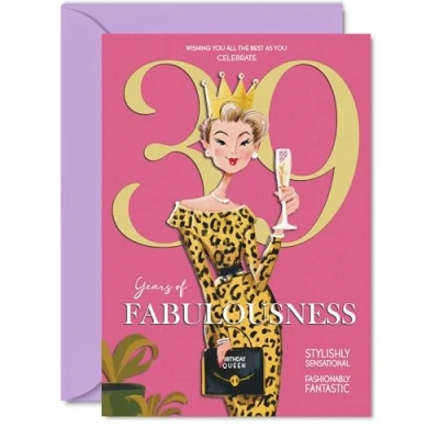 39th Birthday Cards for Women Years Of Fabulousness Happy Card 39 Year Old Woman Colleague Neighbour Friend Sister, A5 Bday Greeting