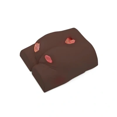Realistic dark-skin buttocks model demonstrating four decubitus stages (grades 1–4). Flexible silicone skin allows assessment, measurement, wound care, and bandaging training. Simulates grade 1 (redness), grade 2 (dermal abrasion), grade 3 (subcutaneous tissue damage), and grade 4 (necrotic tissue). Durable, latex-free material and portable included carry case for easy transport. Includes educational reference for recognition, staging, and treatment of decubitus ulcers.