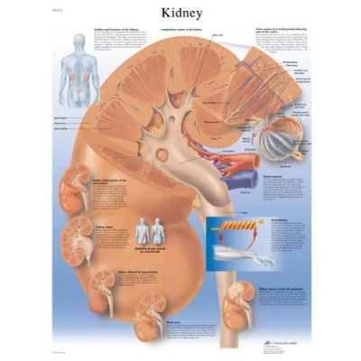3B Scientific Human Anatomy Kidney Chart, Laminated Version