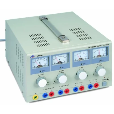 Low voltage power supply with four outputs primarily intended to simultaneously supply power For the Teltron line of electron tubes and Helmholtz Coils, with four independent, adjustable DC voltages The DC voltages are stabilized, regulated, floating, and galvanically isolated from one another, in addition to being short circuit proof and secure from external voltages DC Power supply Power supply range: 0 - 500 V