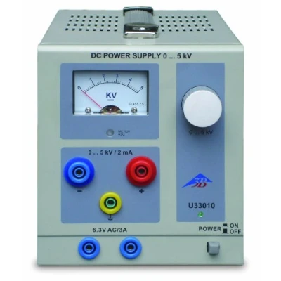 Universally applicable, floating, high-voltage source For operation of electron tubes With built in, high voltage resistant transformer to supply the heater voltage for electron tubes Continuously adjustable high voltage, safe to touch, with passive current limitation and digital voltage display High voltage power supply 5 kV