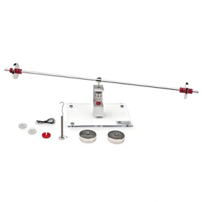 Length of crossbar: 600 mm Radii of multiple pulley: 4.5 mm / 9.0 mm Driving weights: 10 g / 20 g / 30 g / 40 g / 50g Inertial mass of disc(s): 100 g / 200 g / 300 g Dimensions of base plate: 200 x 140 mm