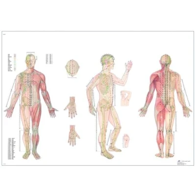 This detailed anatomical poster labels all the important body points for acupuncture The anatomy poster is a great tool for teaching or as a reference point This thickly laminated anatomical chart is printed on premium glossy UV resistant paper and comes with 2 sided lamination (75 micron) The 75 micron lamination ensures the chart does not curl up at the edges and the UV treatment ensures the chart does not get a faded yellow colour over time Measures 20" width by 26" height This thickly laminated anatomical chart is printed on premium glossy UV resistant paper and comes with 2 sided lamination (125 micron, 5.0 Mil) and metal eyelets to make the chart easy to display The 125 micron lamination ensures the chart does not curl up at the edges and the UV treatment ensures the chart does not get a faded yellow colour over time This detailed anatomical poster labels all the important body points for acupuncture The anatomy poster is a great tool for teaching or as a reference point This thickly laminated anatomical chart is printed on premium glossy UV resistant paper and comes with 2 sided lamination (125 micron, 5.0 Mil) and metal eyelets to make the chart easy to display The 125 micron lamination ensures the chart does not curl up at the edges and the UV treatment ensures the chart does not get a faded yellow colour over time Measures 20" width by 26" height