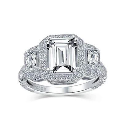 This stunning art deco engagement ring features three exquisite emerald-cut CZ stones at the center, enhanced by sparkling pave CZs on a sterling silver band. Size 8. Measure: 2 MM Band Width, Weight: 4.98 Gram, Stone: 9 MM L x 7 MM W, Material: Sterling Silver, Rhodium Plated, Cubic Zirconia Rhodium-plated for enhanced shine and durability, each piece is stamped .925 to ensure quality and craftsmanship. Hypoallergenic, lead-free, and nickel-free. Choose cubic zirconia to express love for both the Earth and your sweetheart, as lab-created CZ minimizes the social and environmental impact of diamond mining. Virtually flawless, only a jeweler can distinguish CZ jewelry. Thoughtful Gifts for Every Occasion: Whether it's Mother's Day, an Anniversary, Wedding, Birthday, Holiday, Stocking Stuffer, Christmas, Valentine’s Day, or Graduation, our exquisite jewelry is the perfect present. Ideal for expressing your love to your Sister, Mother, Grandmother, Daughter, Wife, Girlfriend, Aunt, Mum, Mommy, Grandma, or even for yourself. It's the ultimate gift for anyone special in your life. USA-Based Company with 30-Day After-Sale Service: We take pride in our craftsmanship and product quality. Rest assured, if you receive an item with manufacturing defects, we've got you covered. Click on the link to contact our friendly customer service.