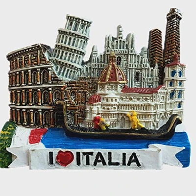 3D 6 Attractions of Italy Souvenir fridge magnet include Venice,Leaning Tower Pisa,Florence,Colosseum,Milan cathedral,Siena,Home & kitchen Decoration Magnetic Sticker Travel Gift
