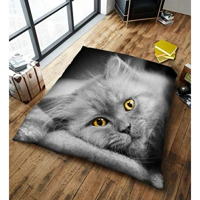 3D Animal Design Luxurious Super Soft Warm and Cosy Throws Faux Fur Fleece Sofa Bed Blankets GC (Cat, King [200x240cms])