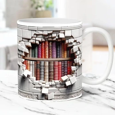 3D Bookshelf Mug Creative Design Ceramic Coffee Library Effect Books Mugs A Shelf Cup Book Club Gifts for Readers Bookish Lovers v2