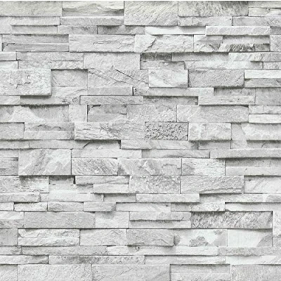 3D Effect Brick Wallpaper Grey White Stone Tile Rustic Vinyl Paste Wall YöL